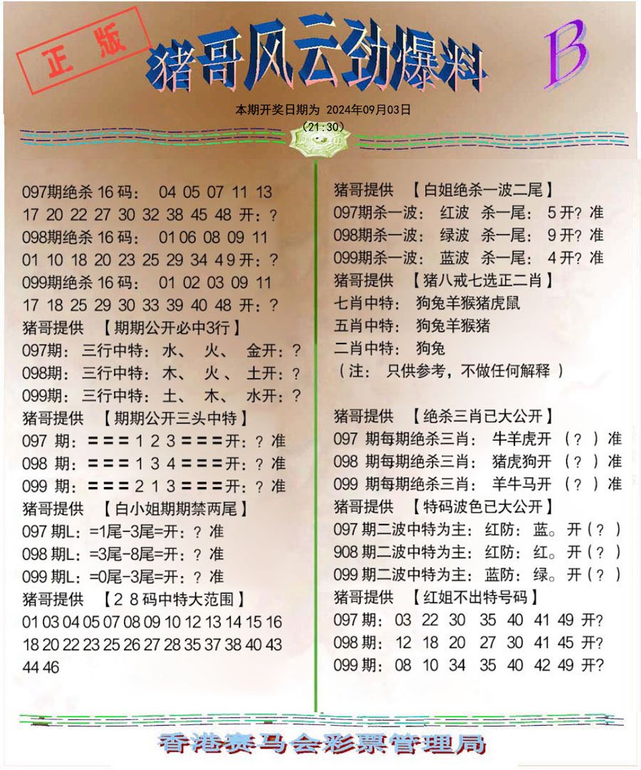 099期猪哥风云劲爆料B[图]