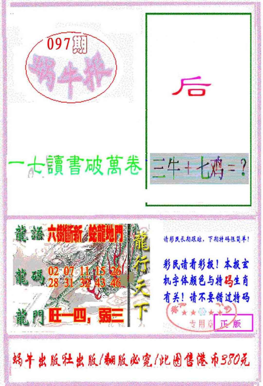 上一篇:097期九龙特新刊[图]
